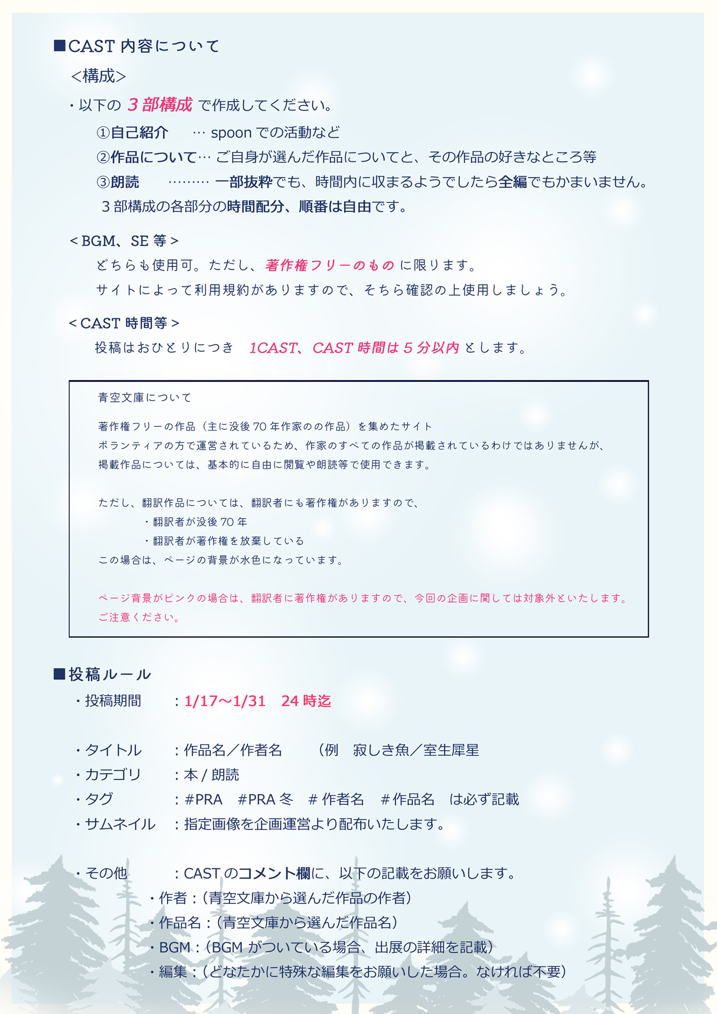 音声配信アプリ上での朗読CAST企画用に作成したものです。