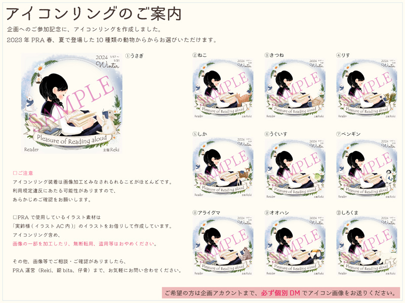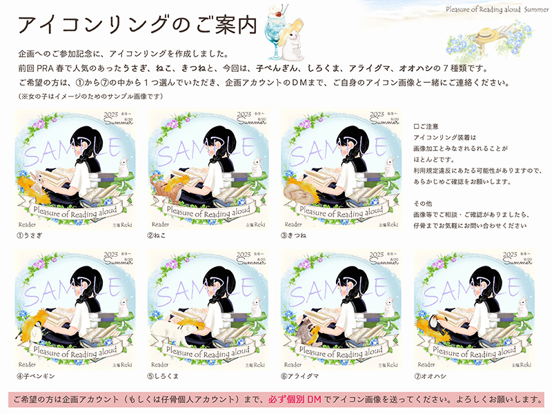 主催者様のトレードマークが白うさぎだったので、白うさぎ等の動物キャラクターを使う。