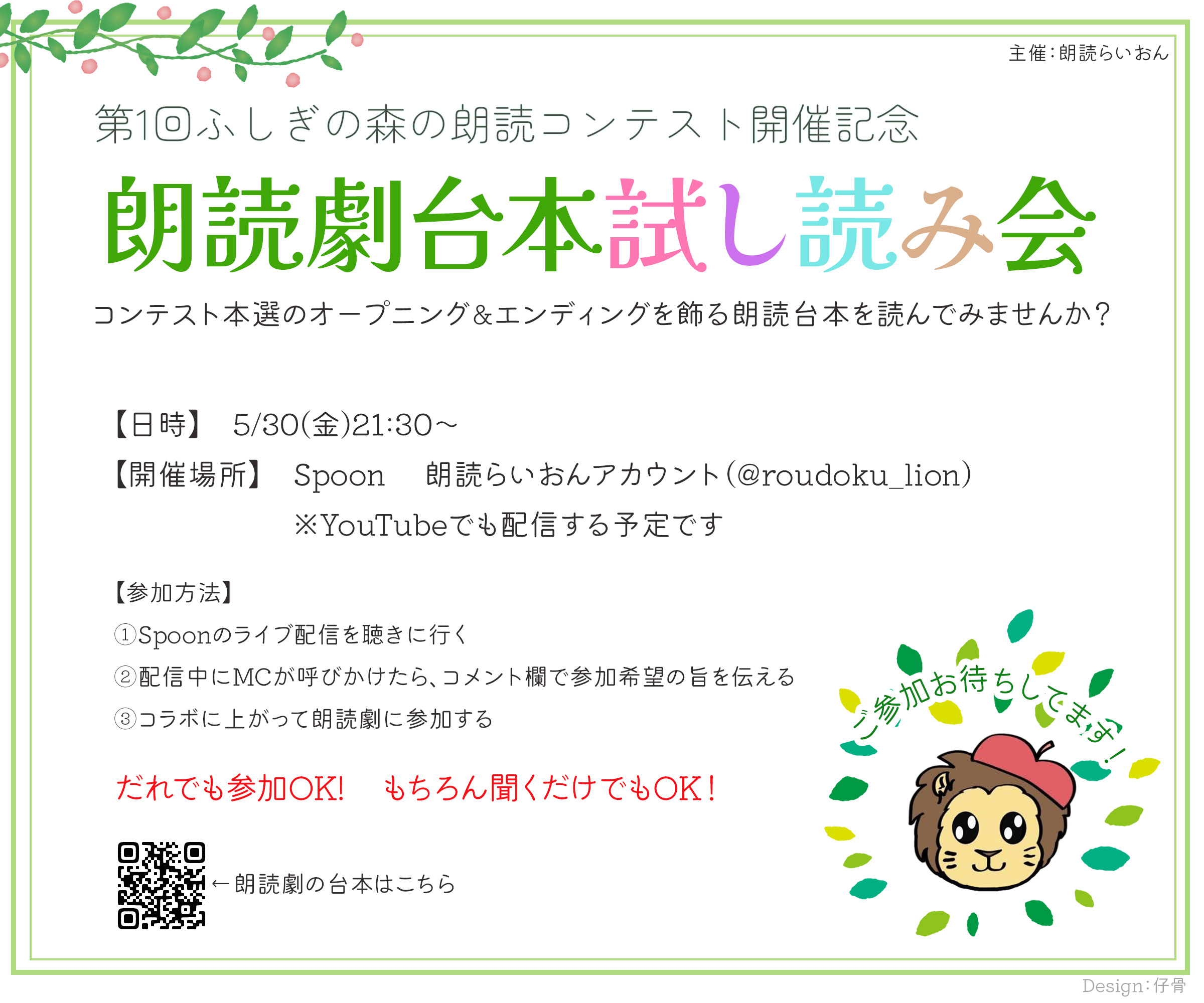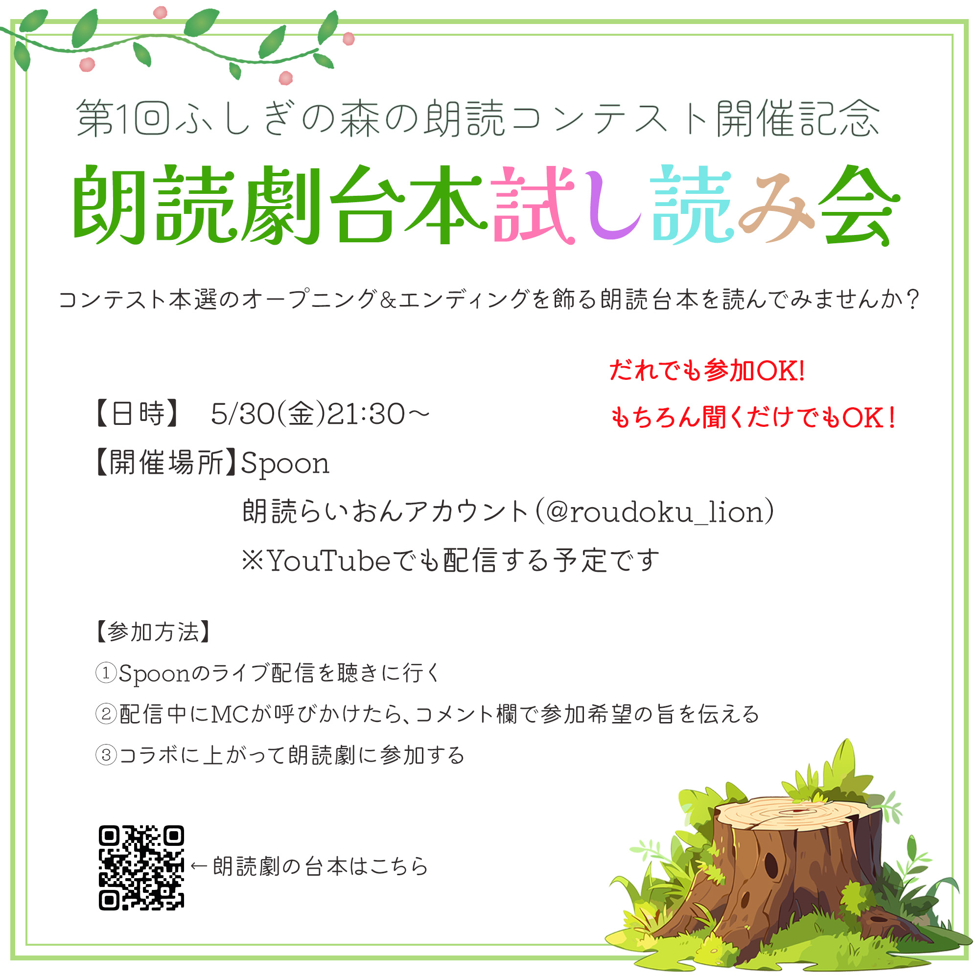 朗読らいおん様主催の朗読コンテスト、「第1回ふしぎの森の朗読コンテスト」。